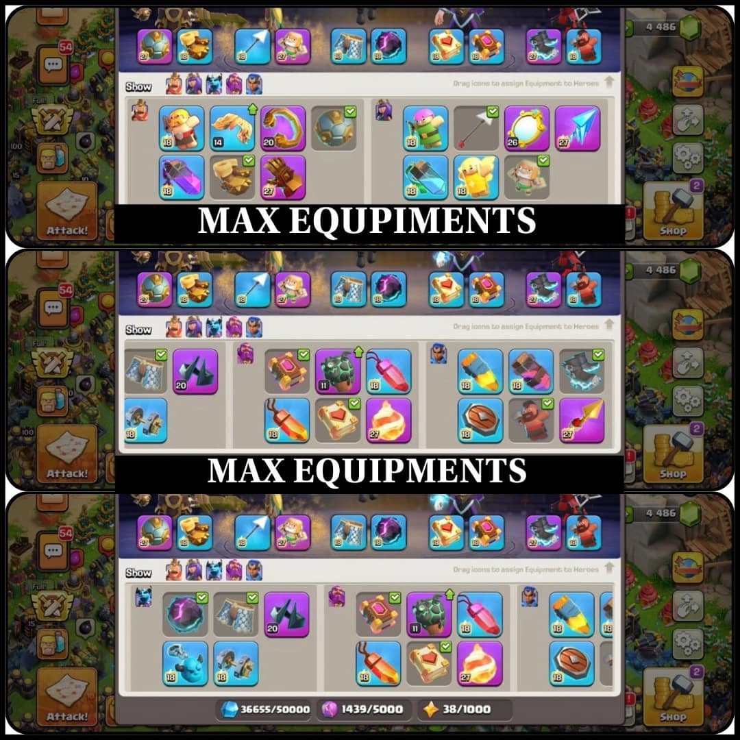💥 TH17 FULL MAX | 208 GLOBAL⭐ | 5.4K WAR STARS 💥 40 K🏆HEROES & PETS MAX 🐾 | STACKED OBSTACLES 🌴 | 90 SKINS 🎭 | 26 SCENERIES 🌄 | EQUIPS MAXED 🛡️