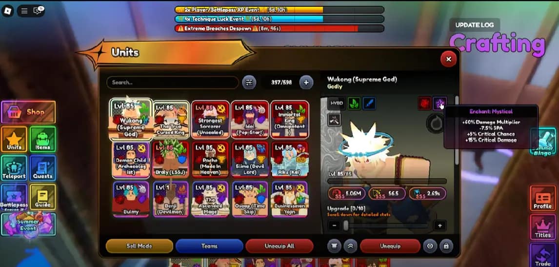 Anime Last Stand// 15 Glitch, 1 Midas, 1 Mystical, 5000+ Technique Shards, 3x Speed, VIP, VIP+ Gamepasses (G)