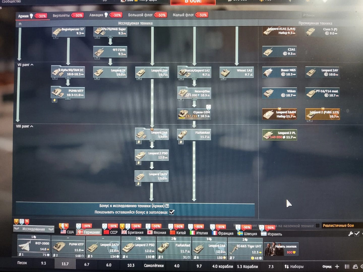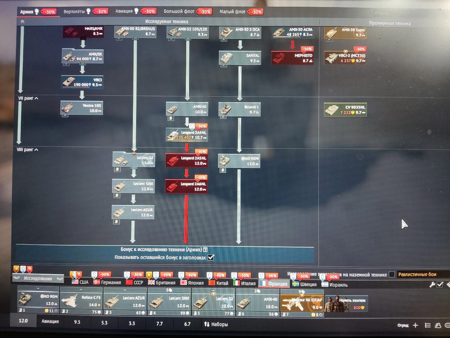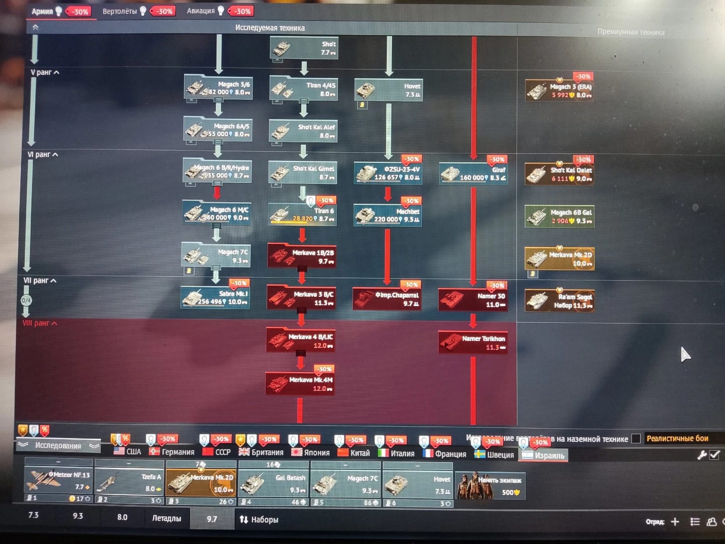 War Thunder account with top-tier vehicles across multiple nations. Features tanks at rank 12.0 for USA, Germany, USSR, Japan, China, France, Sweden, and Italy. Aviation includes USA (13.7), Germany (14.0), USSR (13.7), and France (14.0). Helicopters are available up to rank 12.0 for USA, Germany, and USSR. Additional nations include the UK (tanks at 10.7, aviation at 9.7), Israel (tanks at 10.0, aviation at 7.7), and China (aviation at 3.3, helicopters at 8.7).
